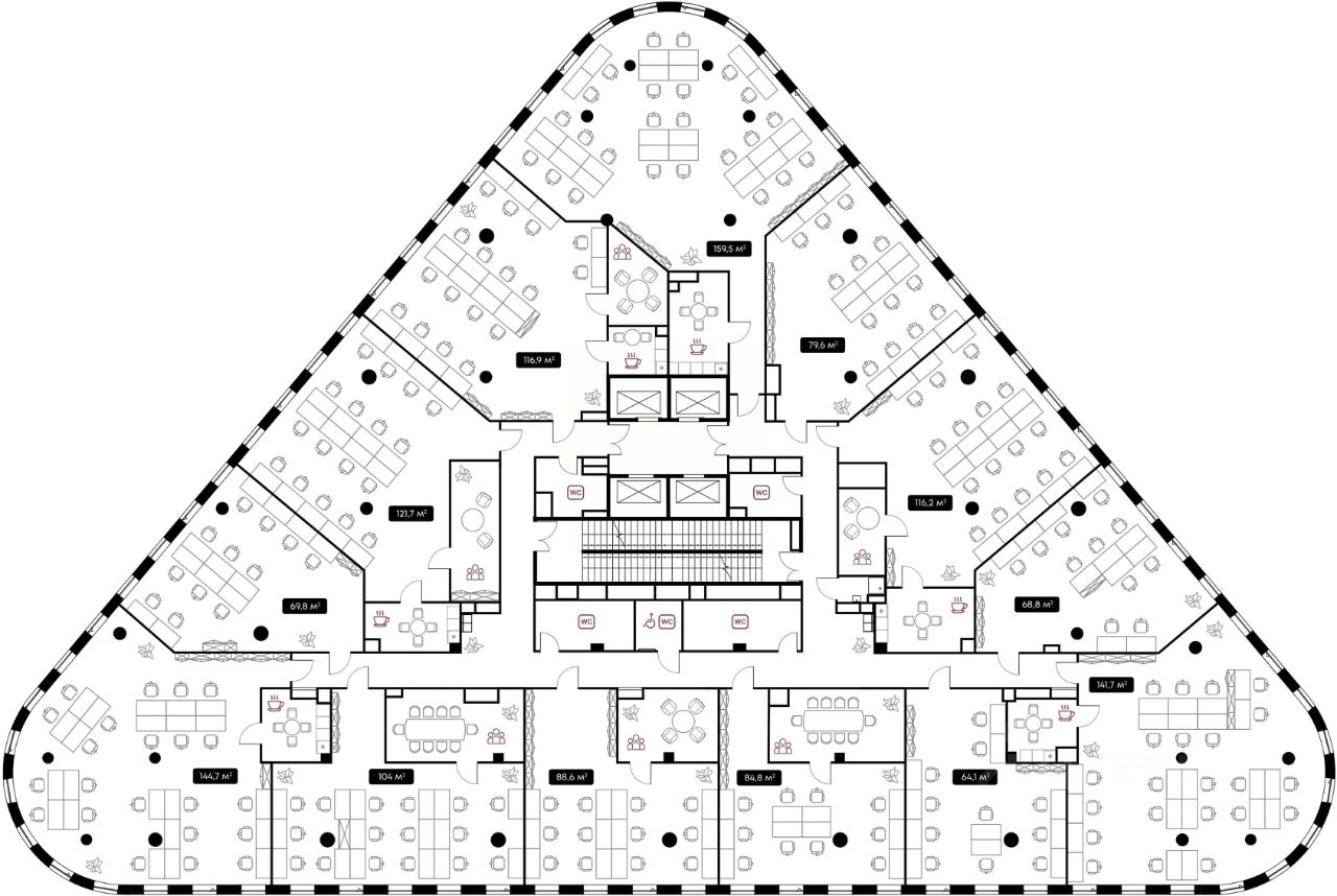 Продается офисное помещение площадью 69.9 м2 на 4 этаже в бизнес-центре NOON от