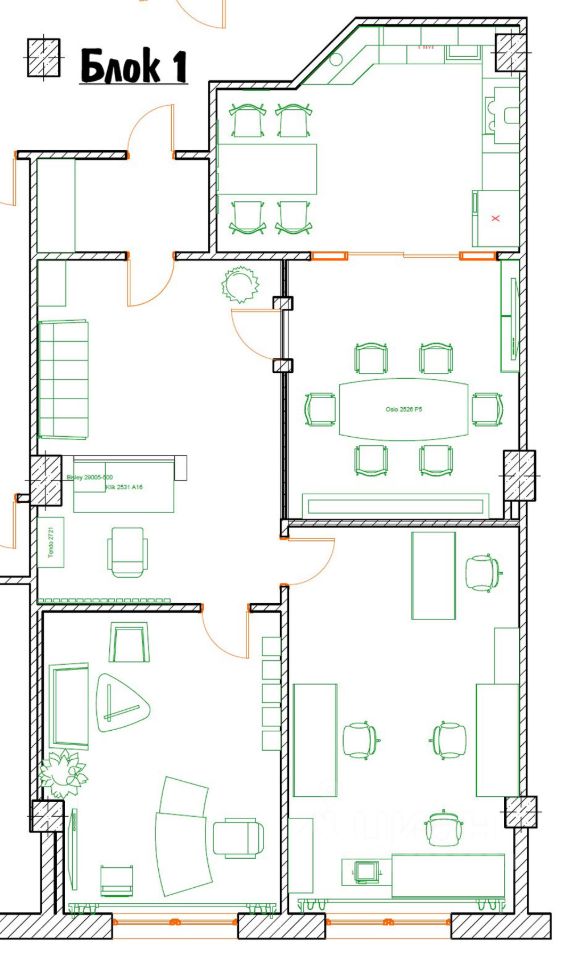Блок включает 4 отдельных помещения (один собственник, продажа одним лотом):