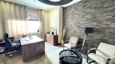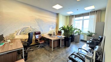 Меблированный офис с 5 помещениями (ресепшен, 2 рабочих кабинета с окнами, переговорная, кухня-столовая),