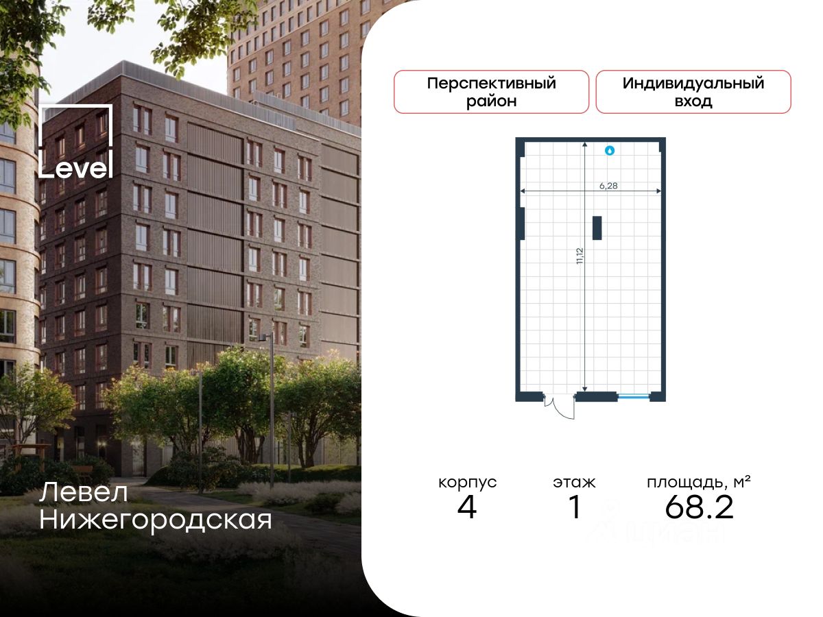 Продаётся помещение свободного назначения площадью 68.2 кв. м. в новостройке Левел Нижегородская по адресу Москва, ЮВАО, Нижегородский, Перовское шоссе, д. 21, корп. 4. Помещение со свободной планировкой. Окна с видом на улицу. Высота потолков 4.80 м. Отдельный вход с улицы. Стоимость помещения — 67 530 021 руб. Способы оплаты и более подробная информация по телефону.