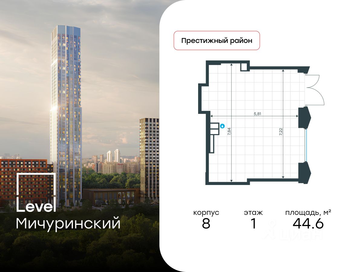 Продается помещение свободного назначения 44.60 кв.м. в проекте бизнес-класса Level Мичуринский по адресу: Озерная улица, дом 1А. Помещение расположено на 1 линии улицы с высоким автомобильным и пешеходным трафиком в престижном Западном районе Москвы. Ликвидная площадь обеспечит высокую рентабельность вложений. Большие витрины высотой более 4 метров наполнят помещение естественным светом и предоставят широкие возможности для оформления рекламных поверхностей.