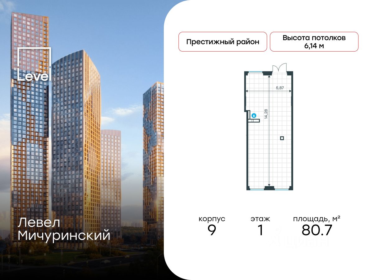 Продается помещение свободного назначения 80.70 кв.м. в проекте бизнес-класса Левел Мичуринский по адресу: Озерная улица, дом 1А. Помещение расположено на 1 линии улицы с высоким автомобильным и пешеходным трафиком в престижном Западном районе Москвы. Ликвидная площадь обеспечит высокую рентабельность вложений. Большие витрины высотой более 4 метров наполнят помещение естественным светом и предоставят широкие возможности для оформления рекламных поверхностей.