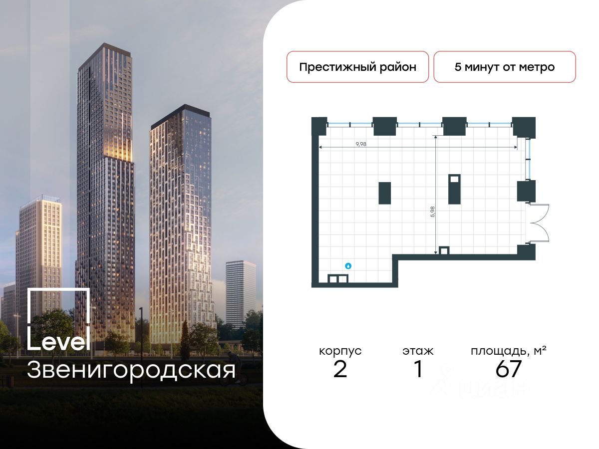 Продаётся помещение свободного назначения площадью 67 кв. м. в новостройке Level Звенигородская по адресу Москва, СЗАО, Хорошево-Мневники, 3-й Силикатный проезд, вл. 6, корп. 2. Помещение со свободной планировкой. Окна с видом во двор. Высота потолков 6.85 м. Отдельный вход со двора. Стоимость помещения — 45 873 832 руб. Способы оплаты и более подробная информация по телефону.