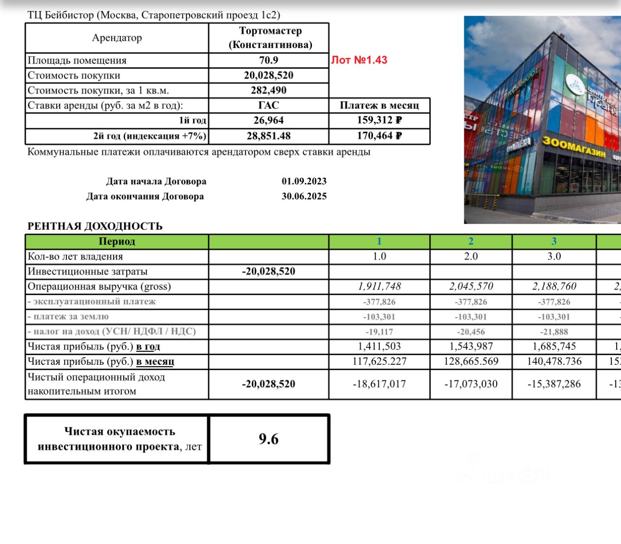Продается помещение в ТЦ Бейбистор с арендатором Тортомастер Константинова