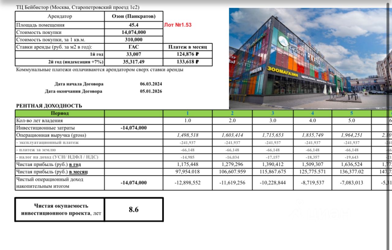 Продается помещение в ТЦ Бейбистор с арендатором Ozon