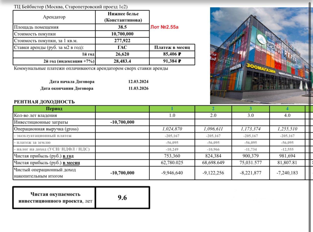 Продается помещение в ТЦ Бейбистор с арендатором Нижнее белье