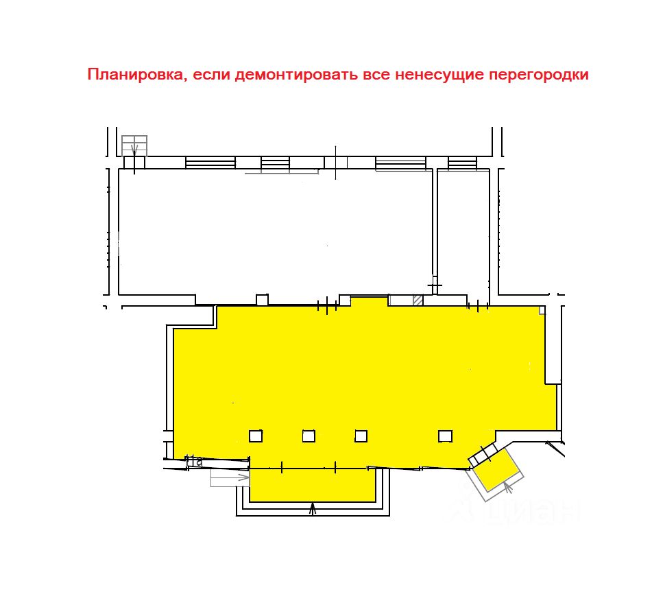 Помещение располагается на 1 этаже жилого дома (на плане БТИ выделено желтым цветом).