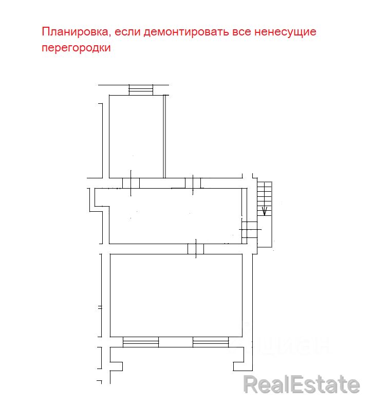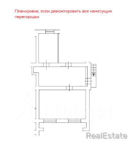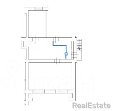 Одна из комнат не входит в собственность. Можно возвести стену из гипсокартона для организации прохода соседей в свое помещение (на плане БТИ отмечено синей линией).