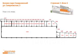 Выгодное вложение для вашего бизнеса! Помещение 32,3 кв м в Бизнес-парке "Смирновский" (Смирновская ул., д. 2). Лот 134 на плане
