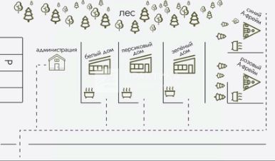 Каждый дом имеет свою озелененную благоустроенную территорию с мангальной зоной и индивидуальным чаном для купания. Дома оборудованы санузлами с душевой кабиной, кухней-гостиной, спальными местами и рассчитаны на 2-4 гостя.