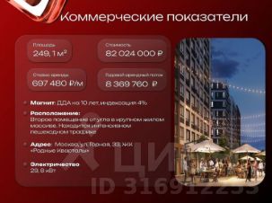 Помещение расположено полностью на первом этаже нового высотного жилого дома (нет подвала). Зальная планирoвка, два отдельных входа с фасада. Высота потолка 4,7 м, панорамное витринное остекление по фасаду, есть места для рекламных вывесок. Высокий рекламный потенциал, отличная визуализация. Все центральные коммуникации. Электрическая мощность 52 кВт. Объект находится в активной стадии строительства, его сдача в эксплуатацию в начале 2026 года. Но уже сейчас стоимость нашего помещения практически такая же, как у застройщика (при этом уже с арендатором !!!). Возможна продажа с сохранением рассрочки от застройщика на сумму 30 000 000 рублей. Таким образом, сумма к оплате в момент приобретения объекта при сохранении рассрочки составит 52 000 000 рублей. Быстрый выход на сделку.