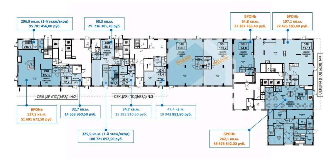 948122 . Предлагаем помещение свободного назначения формата street-retail в ЖК "Сиреневый парк", площадью 47.4 кв. м, расположенное на первом этаже 25-этажного жилого дома. Корпус К3. Без комиссии для покупателя.