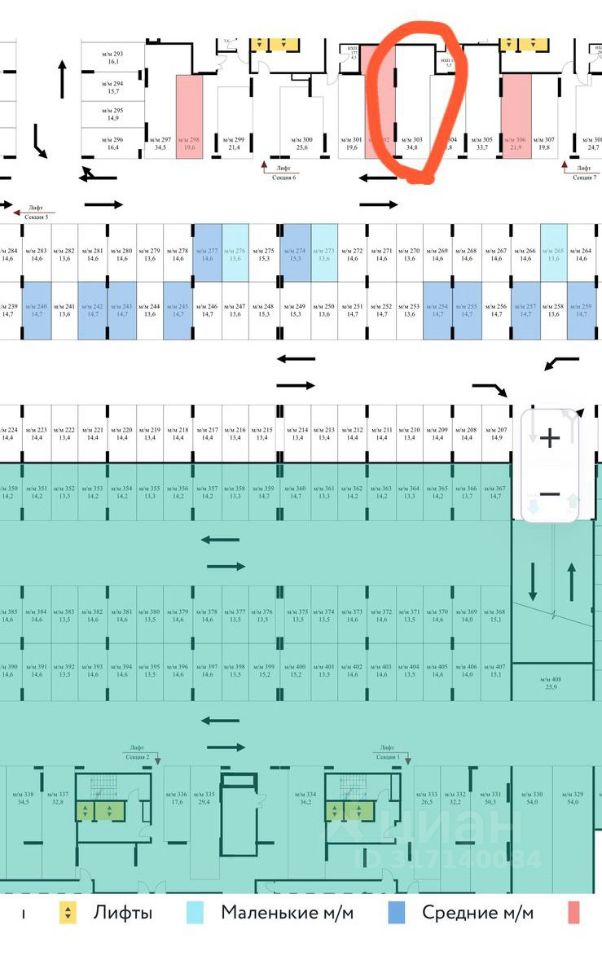 3) Условный номер паркинга 303. Около лифта секции 6.