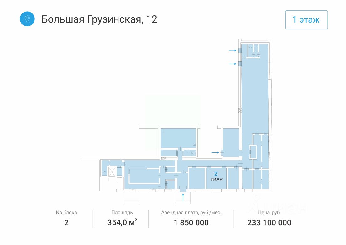 К продаже предлагается торговое помещение площадью 354м² по адресу: Большая Грузинская, 12