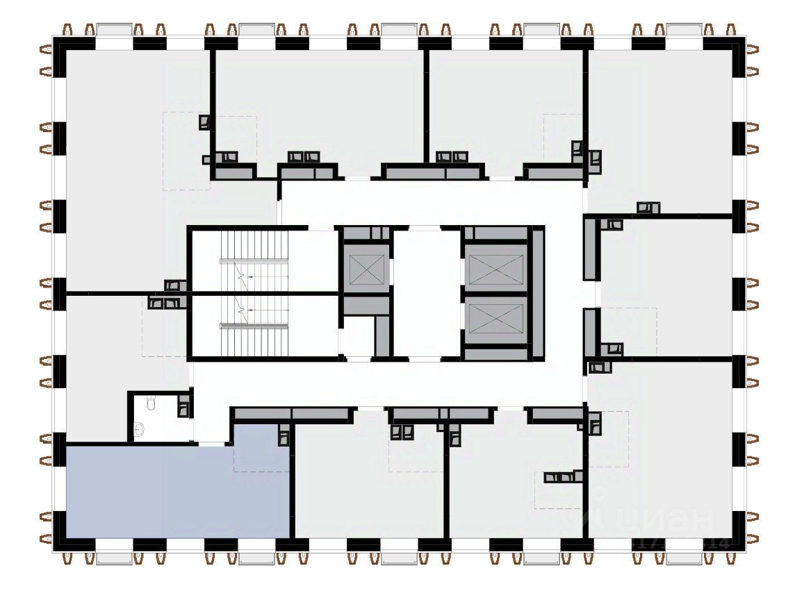 В стилобате размещаются торговые площади под магазины, рестораны, кафе. Будет организована зона коворкинга с разноуровневыми пространствами — от маленьких переговорных комнат до больших конференц-залов.