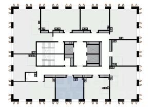 В стилобате размещаются торговые площади под магазины, рестораны, кафе. Будет организована зона коворкинга с разноуровневыми пространствами — от маленьких переговорных комнат до больших конференц-залов.
