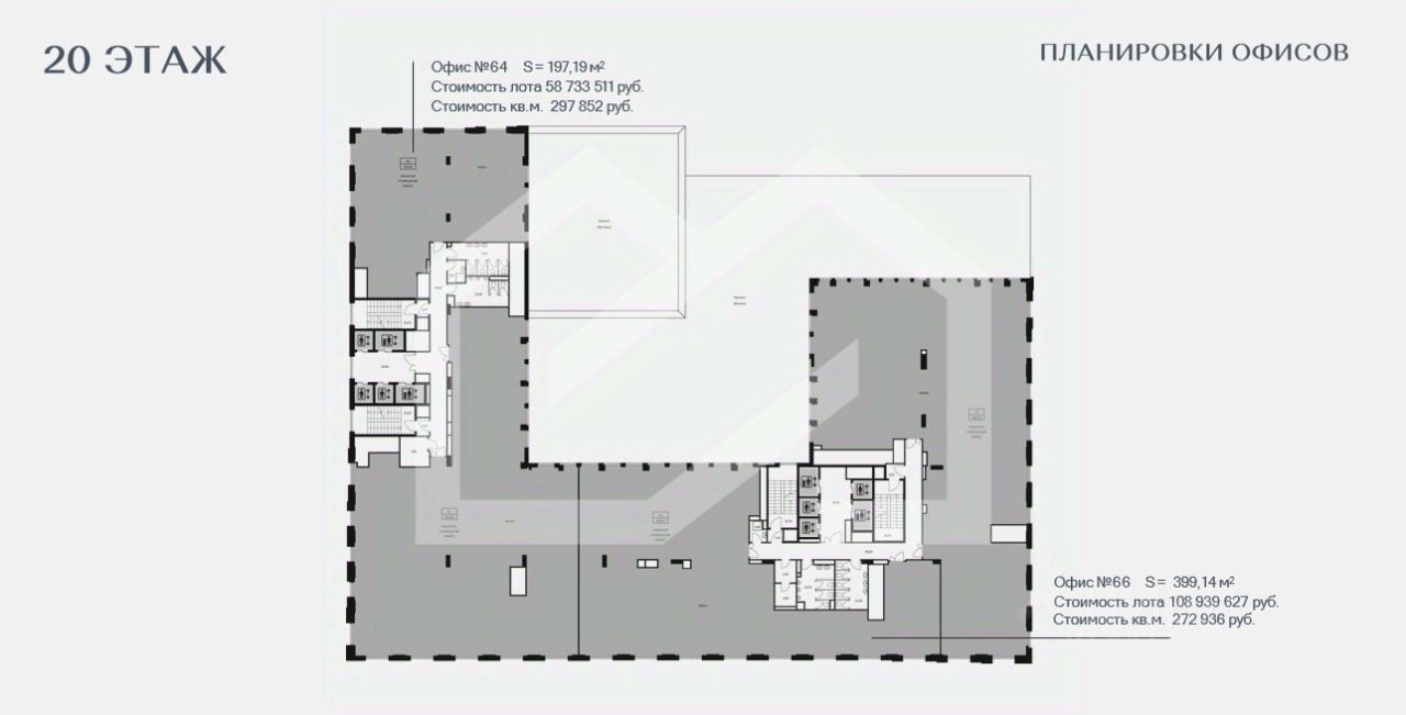 948421 . Предлагаем офисное помещение площадью 399,14 кв. м, расположенное на 20 этаже в многофункциональном офисно-торговом центре в рамках жилого комплекса "Сиреневый парк".