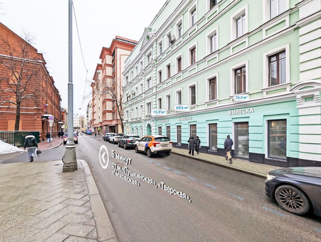 обеспечена большая проходимость. так как помещение находится в крупном деловом районе с большим жилым массивом, а также в окружении расположены бизнес-центры "Пушкинский", "Галерея Актер", элитные жилые комплексы "Сытинский", "Бакст на Патриарших", "Левенсон", "The Patricks", Государственный центральный музей современной истории России, Литературный институт имени А. М. Горького, а также театры "Практика", "Московский драматический театр имени А. С. Пушкина", "МХАТ им. Горького", "Электротеатр Станиславский"
