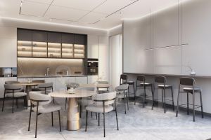 На первом этаже разместится просторное дизайнерское лобби с высотой потолков 9,6 м, стойка ресепшн и зоны ожидания для посетителей. Высота типового этажа составляет 3,6 м.