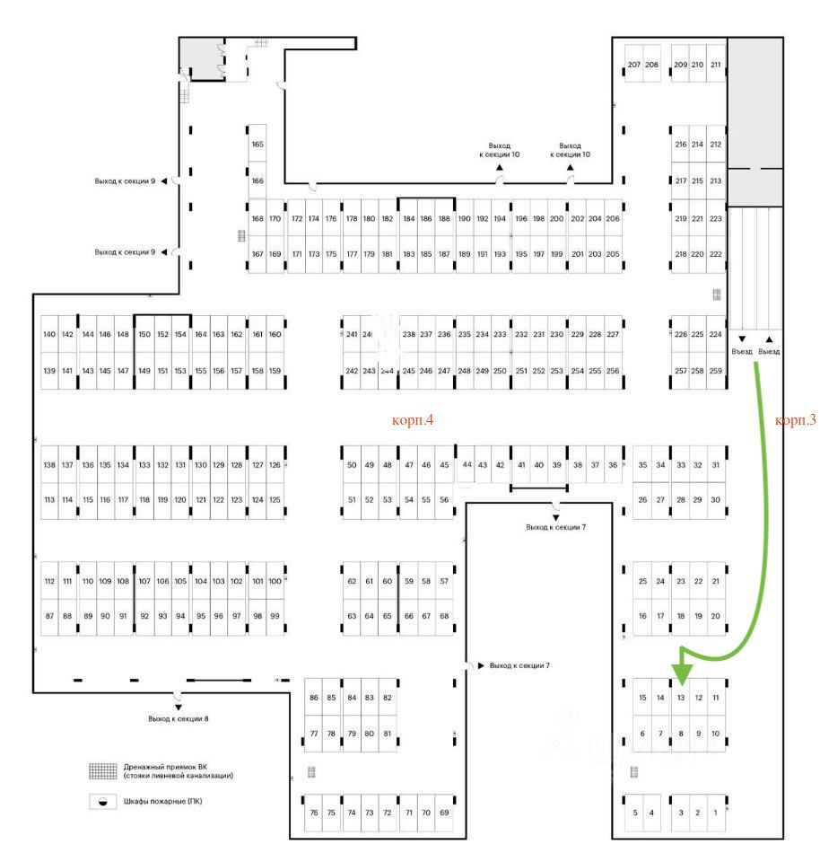Продается машиноместо 13,8 кв.м. Удобное расположение как для корпуса 4, так и для корпуса 3.