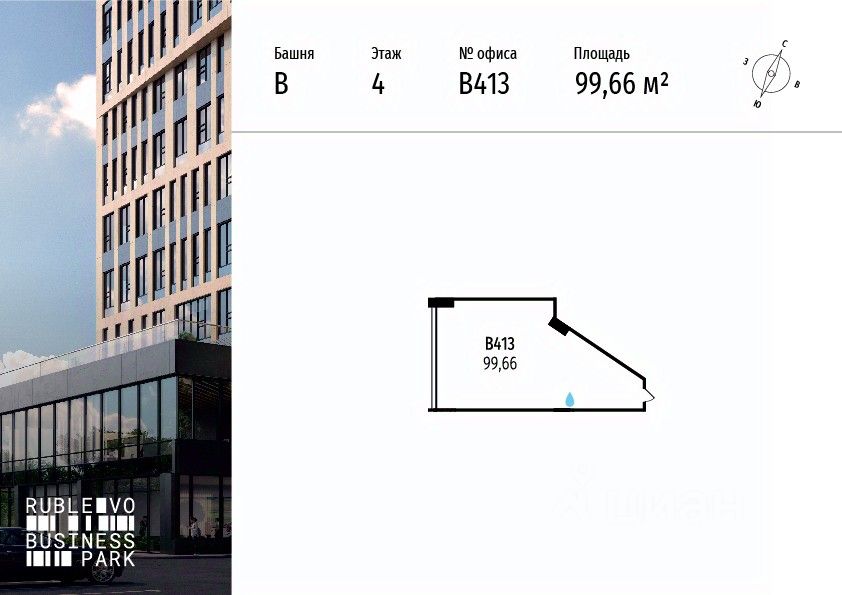 ОФИС В БАШНЕ B | RUBLEVO BUSINESS PARK Класс А | Ввод в эксплуатацию — 4 кв. 2025 года Победитель премии Move Realty Awards в номинации "Лучший проект для инвестиций" Инвестируйте в офис с максимальным потенциалом роста — в новом бизнес-центре Rublevo Business Park. Современный проект А-класса на Новорижском направлении: высокий спрос, редкие форматы, идеальная транспортная доступность. Преимущества объекта • Свободная планировка от 50 до 4000 м² — возможность адаптации под любые задачи бизнеса. • Высота потолков от 4,05 до 6,03 м — создаёт ощущение простора, идеально для открытых пространств, шоурумов и двухуровневых решений. • Частные террасы — уникальный формат на офисном рынке Москвы. • Панорамное угловое остекление — естественный свет в течение всего дня и впечатляющие виды. • Shell & Core — гибкость в проектировании интерьера под себя. Архитектура и инженерия • Класс А — соответствие высоким стандартам по инфраструктуре, инженерным системам и управлению зданием. • Гранд-лобби 1500 м², высота 9 м — знаковое пространство с интерьерами от бюро UNK corporate interiors. • 22 скоростных лифта — бесшумные и быстрые, рассчитаны на интенсивный трафик. • Современные инженерные системы — высокий уровень комфорта и энергоэффективности. Локация и транспорт • 2 минуты до Новорижского шоссе и проспекта Маршала Жукова — быстрый выезд на ключевые магистрали. • 8 минут до м. Строгино, 500 м до будущей м. Липовая роща (открытие до 2027 года) — отличная доступность как на авто, так и на общественном транспорте. Условия покупки • Продажа по ДДУ (214-ФЗ) через эскроу-счета • Проектное финансирование от Сбербанка • Возможна рассрочка • Возврат НДС 20% Инвестиционная привлекательность • Ожидаемый рост капитализации с открытием метро • Возможность сдачи по блокам или этажом целиком • ROI: 9-12% ________________________________________ Адрес объекта: МКАД, 64 км
