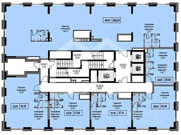 742395 . Предлагаем офисное помещение площадью 208,9 кв. м, расположенное на 9 этаже БЦ "AFI Park Воронцовский"