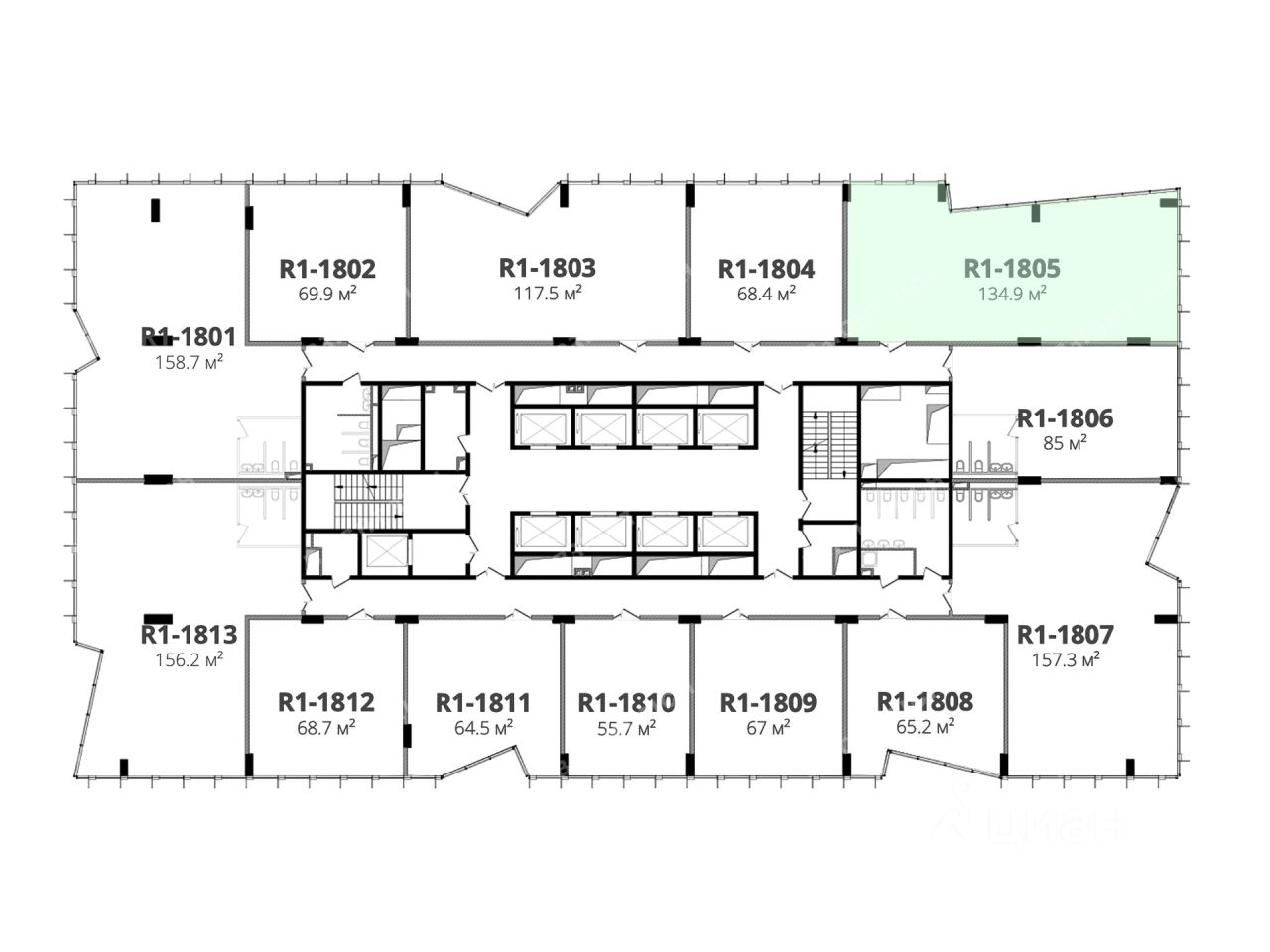 - Размер типового этажа: 1640;