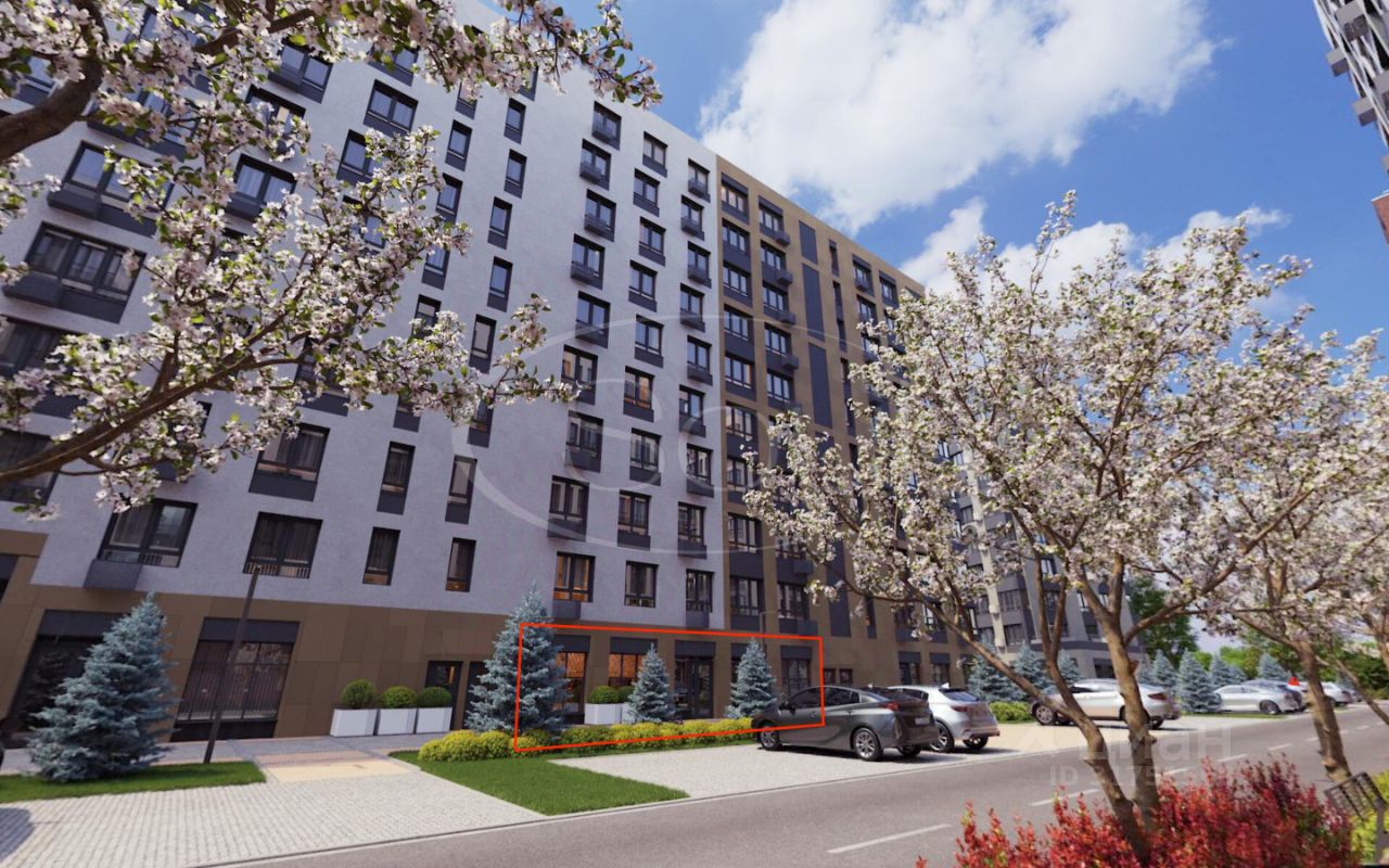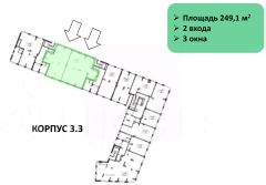 Помещение площадью 249,1 м² находится на первой линии жилого комплекса, с панорамными витринными окнами и отдельным входом. Это пространство расположено на центральной улице ЖК, в зоне высокого трафика, и имеет удобный доступ для арендаторов.