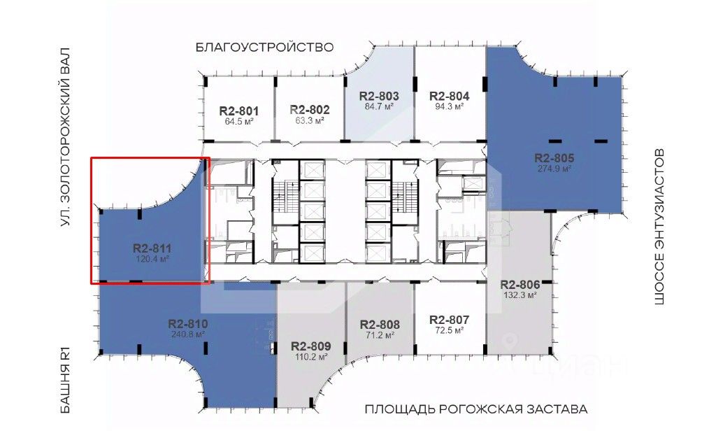 808944 . Предлагаем офисное помещение площадью 115,1 кв. м, расположенное на 8 этаже БЦ "Stone Римская"