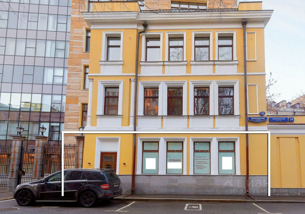 К продаже от собственника предлагается торговое помещение площадью 196,9м² по адресу: Москва, Еропкинский переулок, 16с6. Без комиссии!