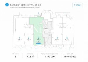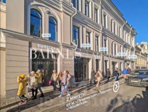 Предлагается в покупку коммерческое помещение, расположенное на улице Большая Бронная в Центральном административном округе Москвы, в престижном районе возле Патриарших. Объект находится в двух минутах пешком от станций метро "Пушкинская", "Тверская" и "Чеховская", что гарантирует высокий пешеходный трафик.