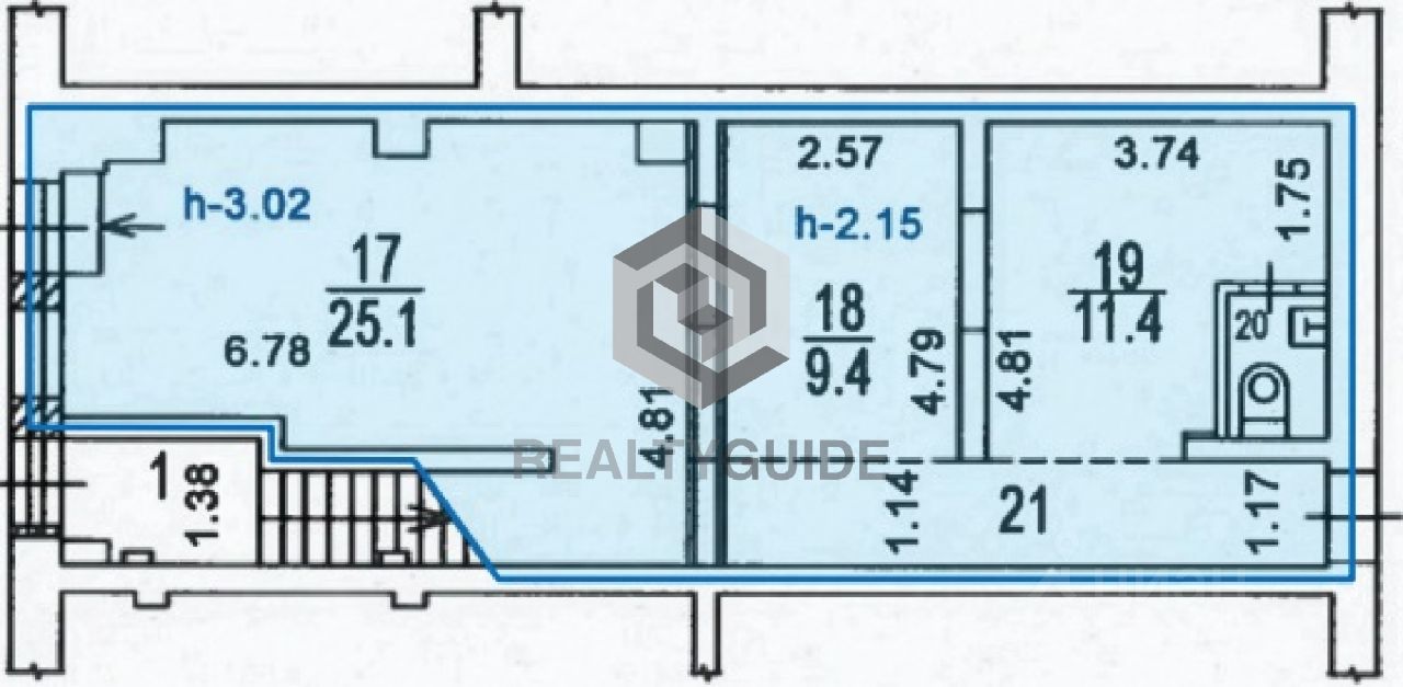 Высота потолков, h: 2.15м