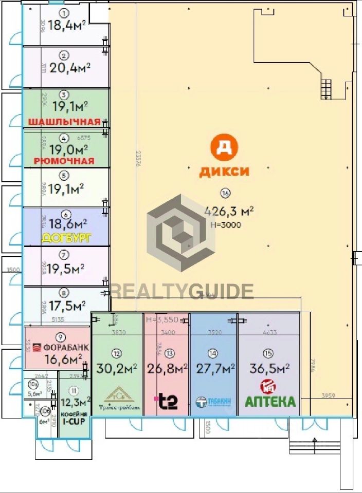 17 торговых помещений, отдельные входы с фасада, подходит под любой вид деятельности, допустимый режим работы 24/7