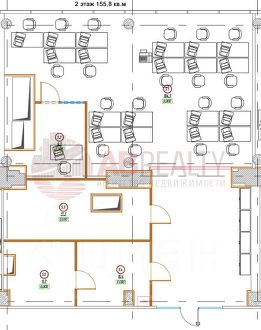 2 этаж. Офис площадью 333,8 кв.м (155,8+178) со свежим стильным ремонтом.