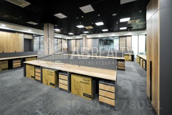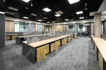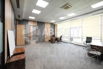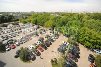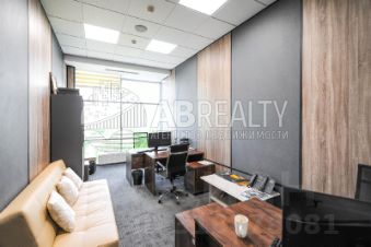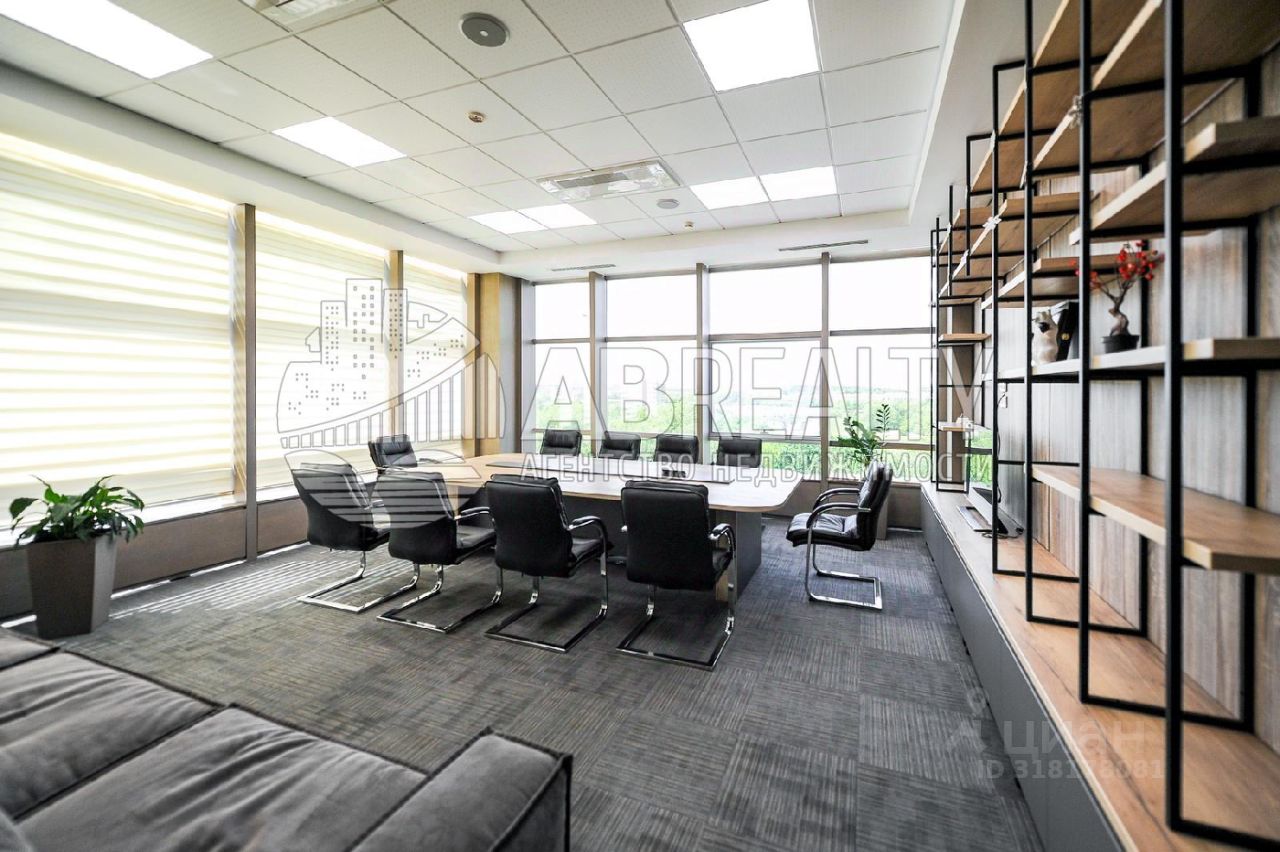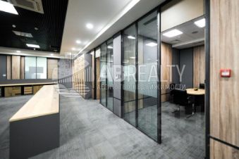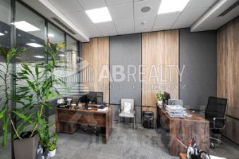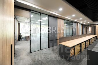 Офис с панорамным остеклением по трем сторонам, с видом на парк и проспект Генерала Дорохова.