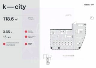 ID 962795 Самый светлый и просторный офис 118 м2 в БЦ K-CITY благодаря панорамному остеклению с 3 сторон и потолками 3,65 метра! Комфотное размещение на 10-15 человек. В единственном БЦ класса на Бауманской от Застройщика. K-CITY - единственный БЦ класса А в локации Бауманской! Продажа офисов от застройщика. Удобная локация: 1 мин. до ТТК, рядом 2 станции метро (5 мин. до м. "Бауманская" пешком), в 10 мин. на машине площадь трех вокзалов и Садовое кольцо. Широкий выбор офисов от 36 до 716 м с возможностью объединения до этажа целиком. Высокая инсоляция - потолки 3,65 м, панорамное остекление с естественным проветриванием. Современная инженерия, центральное кондиционирование и приточно-вытяжная вентиляция. Инфраструктура в бизнес-центре на 1-2 этажах (кафе, рестораны, магазины), столовая, артхаб, видовая терраса на крыше для резидентов, подземный паркинг. Строительная готовность в 4 квартале 2028 года. Рост стоимости к завершению проекта от 40%! В локации вакансия площадей составляет менее 5%, высокие ставки аренды от 45 тыс. руб./м2 в год. Рассрочка с первоначальным взносом от 10% на 1,5-2 года, НДС 20%.