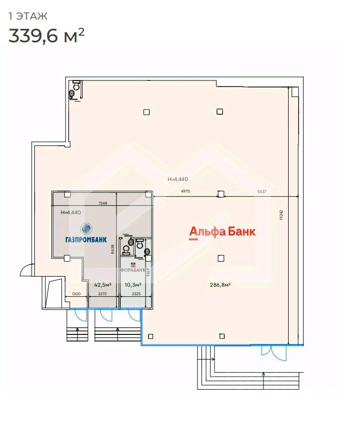 898856 . Предлагаем помещение свободного назначения формата Street Retail с сетевым надежным арендатором "Альфа Банк", площадью 289,2 кв. м., расположенное на первом этаже жилого дома. Без комиссии для покупателя.