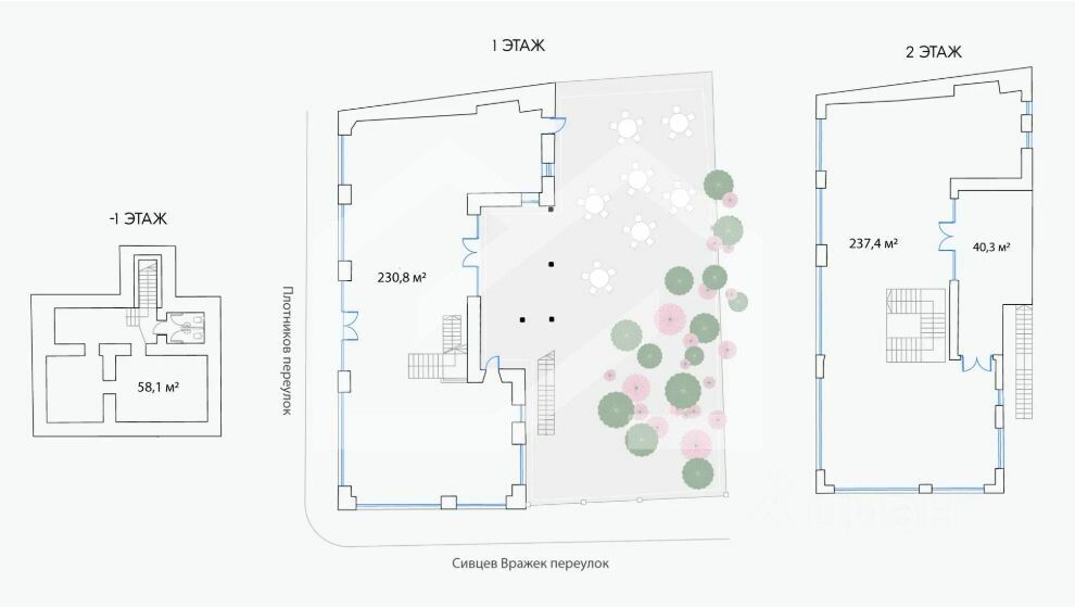 -к зданию прилегает земельный участок, который может эксплуатироваться по усмотрению владельца: уютный закрытый двор для мероприятий, веранда ресторана, автомобильная парковка и др.