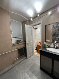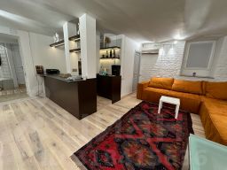 все коммуникации новые. Два санузла (один с душем), дизайнерский ремонт с использованием дорогих материалов.