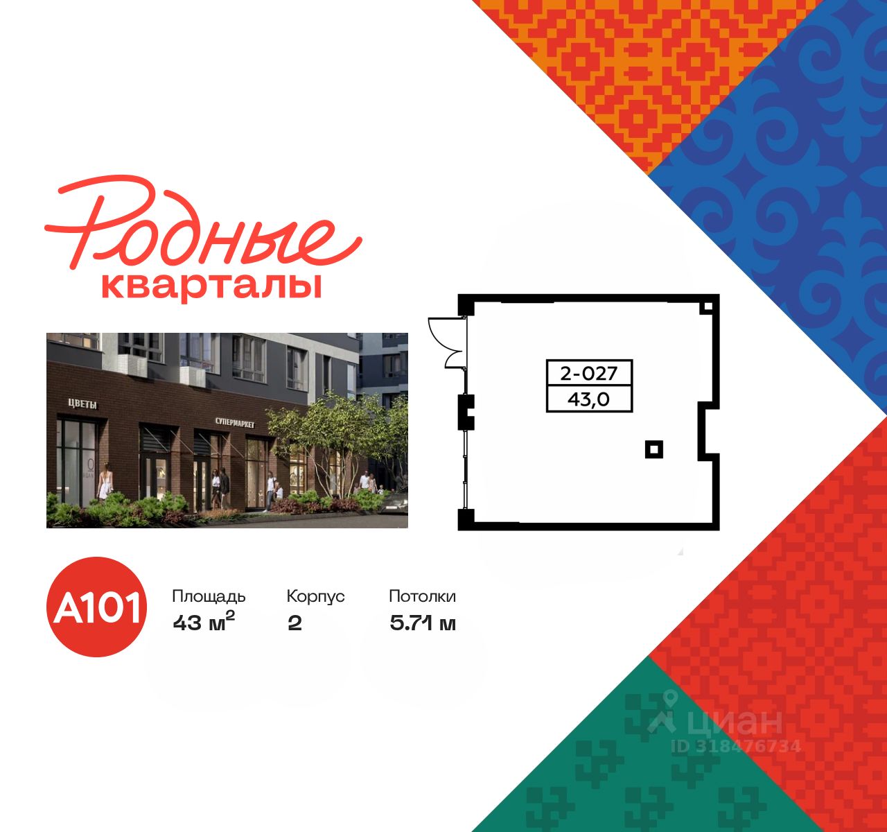 Продаются торговые помещения площадью от 43 на 1-м этаже ЖК Родные кварталы.