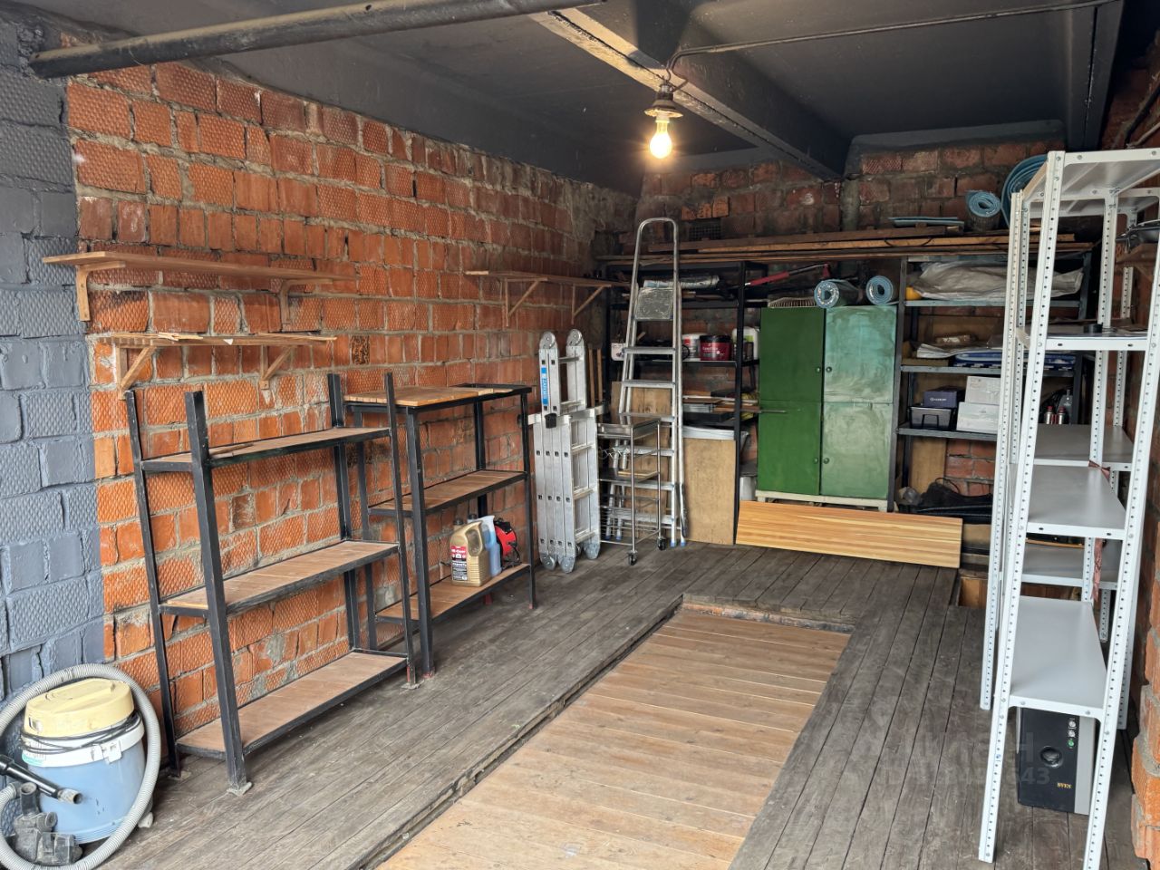 Кладовка обита деревянными рейками. За время эксплуатации гараж поддерживался в хорошем состоянии, периодически проводился косметический ремонт крыши, стен и Пола: последний ремонт был в 2024-2025 году. Были проведены следующие работы: кирпичные стены покрыты специальном лаком, бетонный потолок- краской, деревянный пол -специальным маслом для уличных террас, крыша - специальной битумной мастикой для гидроизоляции Технониколь.