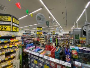 2. Прикассовая зона: аптека "Горздрав", Цветочная лавка, Хозтовары, бытовые товары.