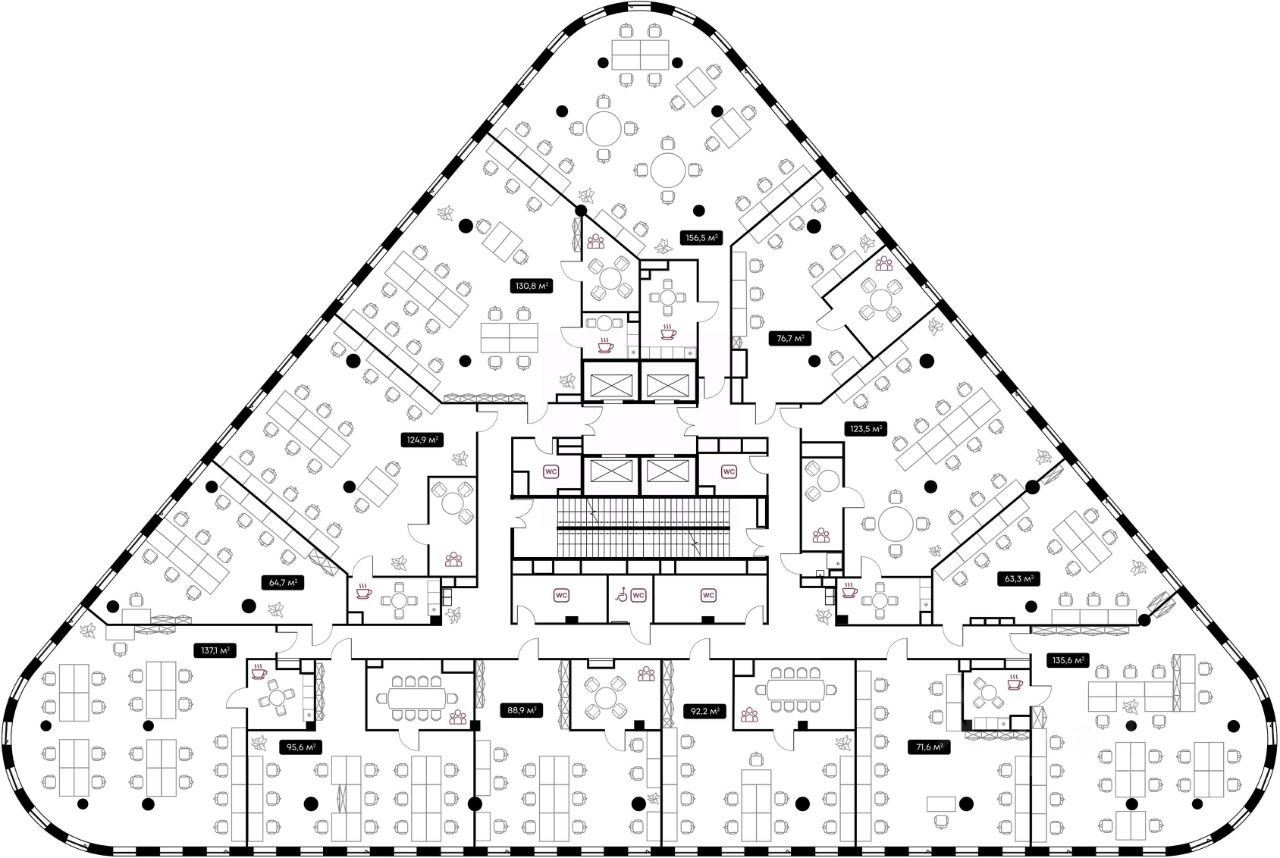 Продается офисное помещение площадью 91.3 м2 на 2 этаже в бизнес-центре NOON от