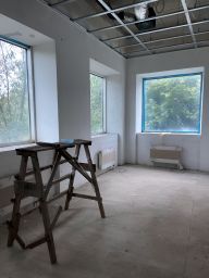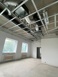 Двухэтажное здание построено в 2009 году (качество строительства безупречно), огорожено бетонным 5-ти метровым забором. В здании высокие потолки (4 метра), большое количество кабинетов/комнат/залов. Имеется подвальное помещение (40 кв. м), технический этаж (30 кв. м). При строительстве применена монолитно-каркасная технология, выполнена обшивка панелями Alucobond, перекрытия ж/б, фундамент свайно-ростверковый. Под отделку. Смонтирована приточно- вытяжная вентиляция, кондиционирование.