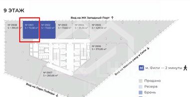 898136 . Предлагаем офисное помещение площадью 72.5 кв. м, расположенное на 9 этаже БЦ "Porta"