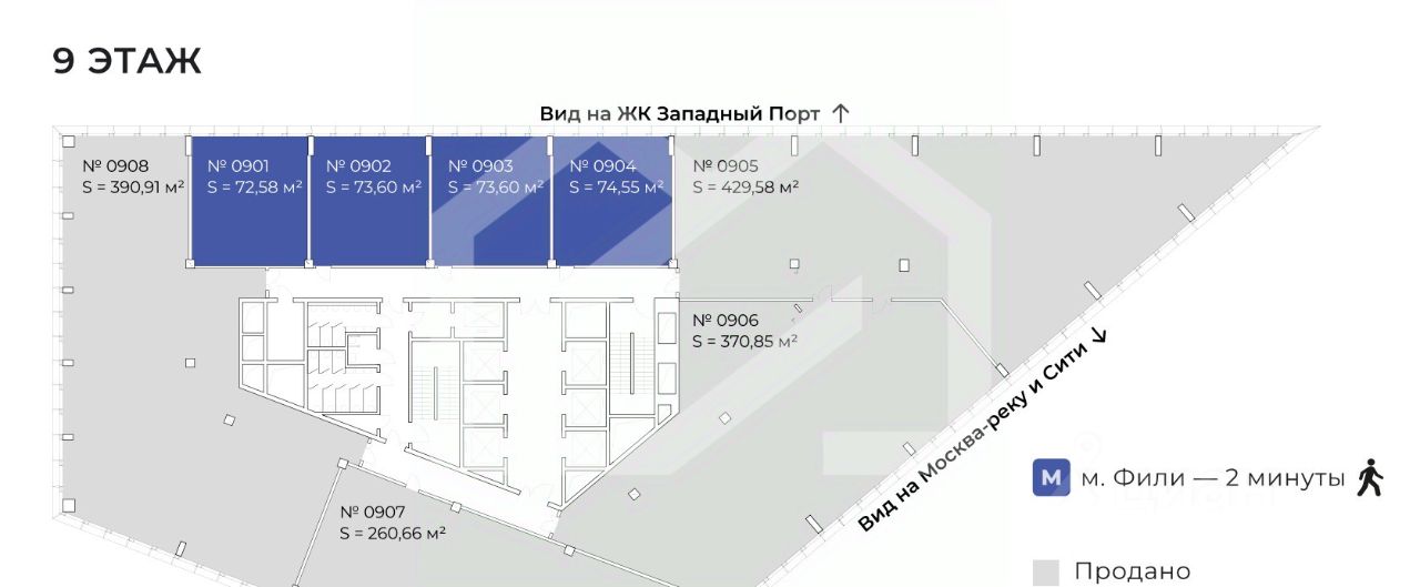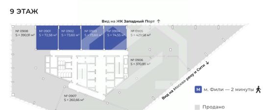 898137 . Предлагаем офисное помещение площадью 73,6 кв. м, расположенное на 9 этаже БЦ "Porta"