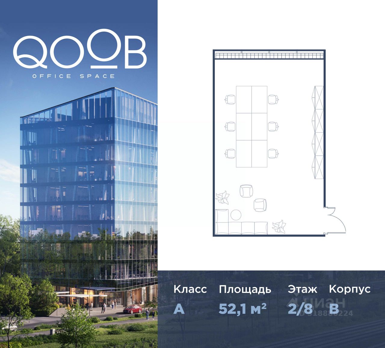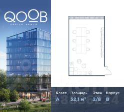 Продается офисное помещение площадью 75,5 м2 на 2 этаже, в бизнес-центре QOOB от застройщика Dominanta.