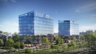На территории бизнес-центра оборудованы места для отдыха, прогулочные аллеи с ландшафтным дизайном, велопарковки.