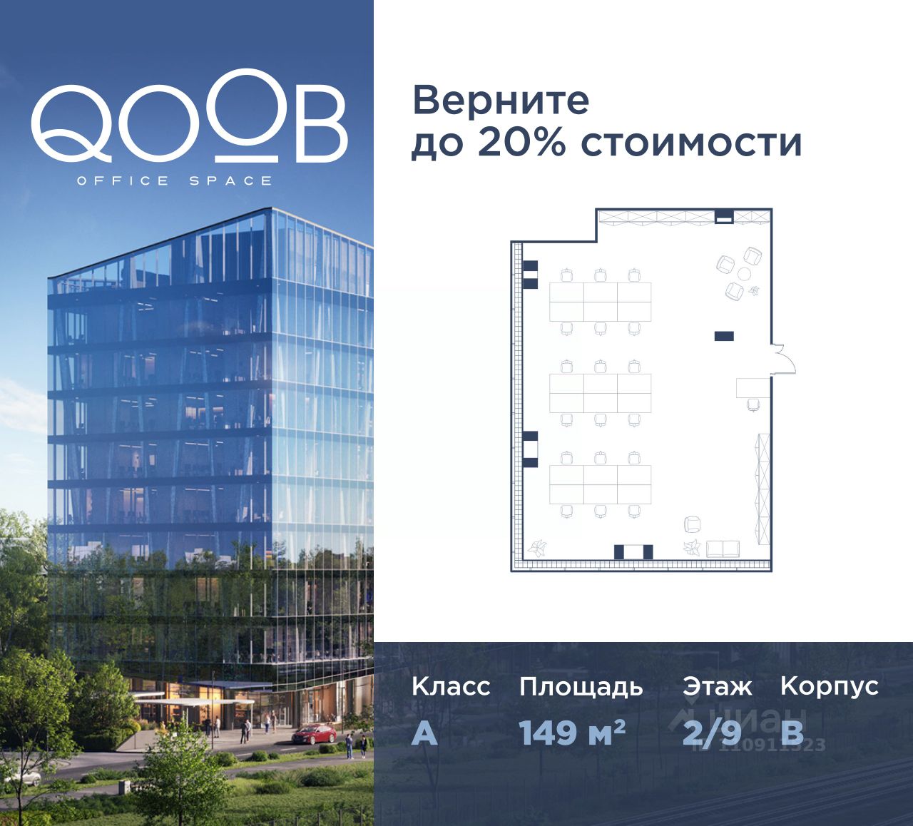 Продается офисное помещение площадью 149 м² на 2 этаже, в бизнес-центре QOOB класса "А" от застройщика Dominanta.