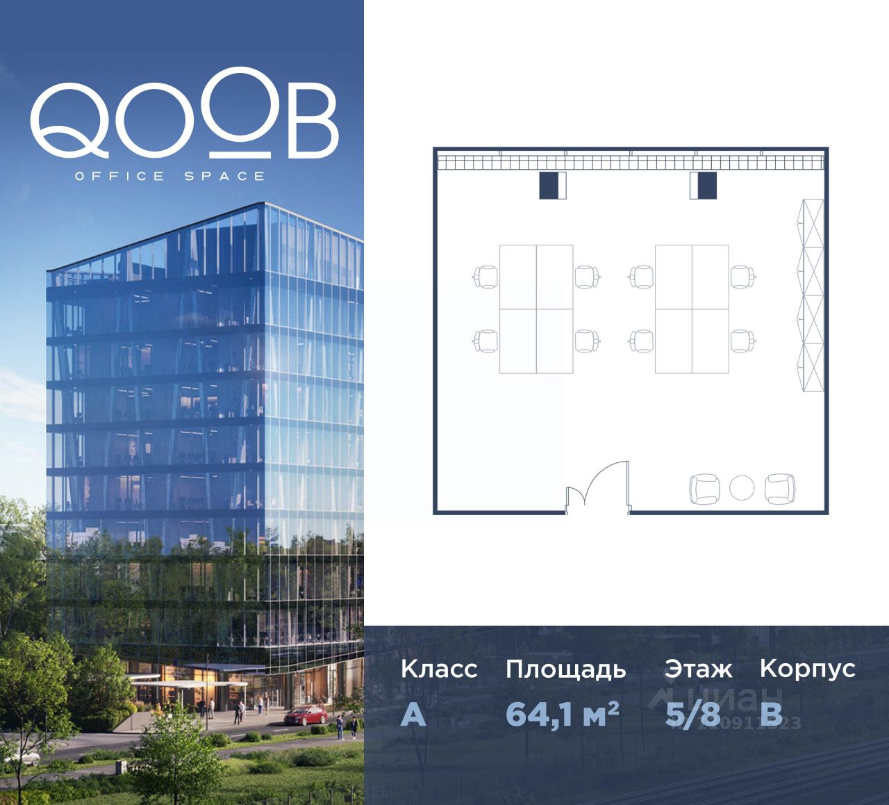 Продается офисное помещение площадью 64,1 м2 на 5 этаже, в бизнес-центре QOOB от застройщика Dominanta.